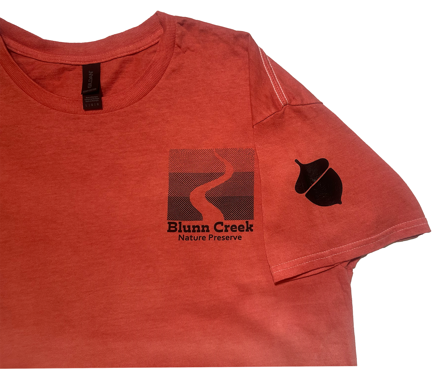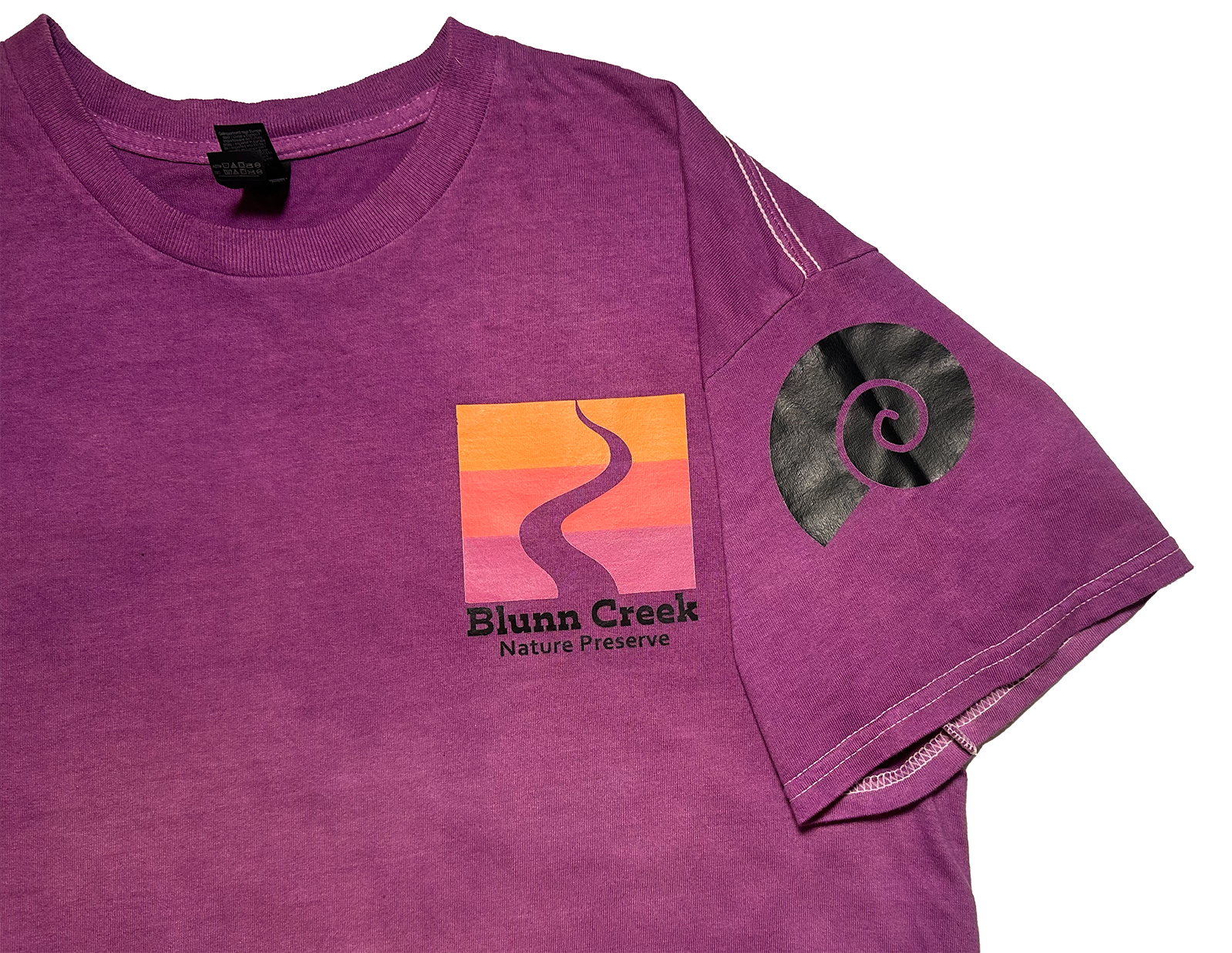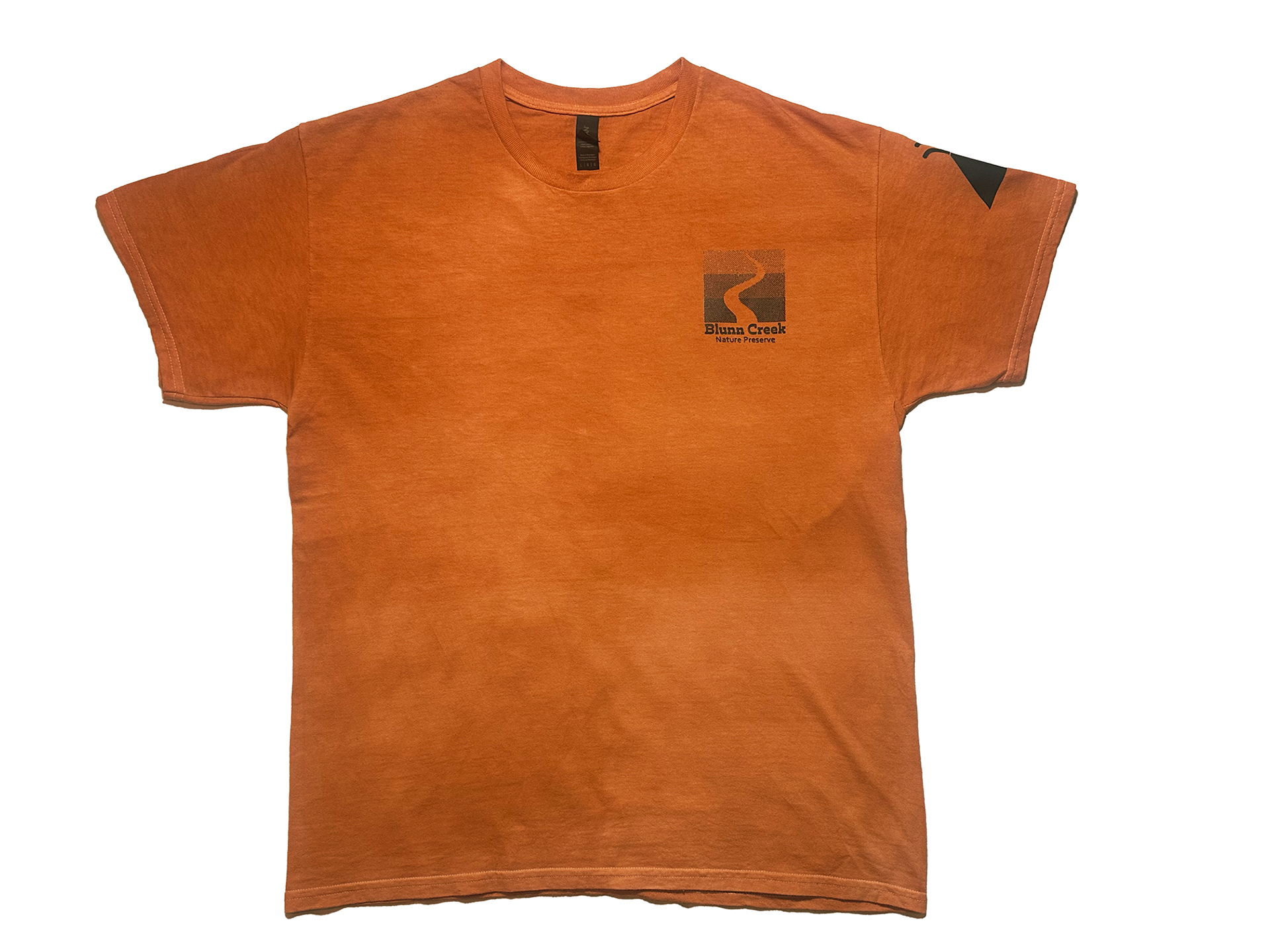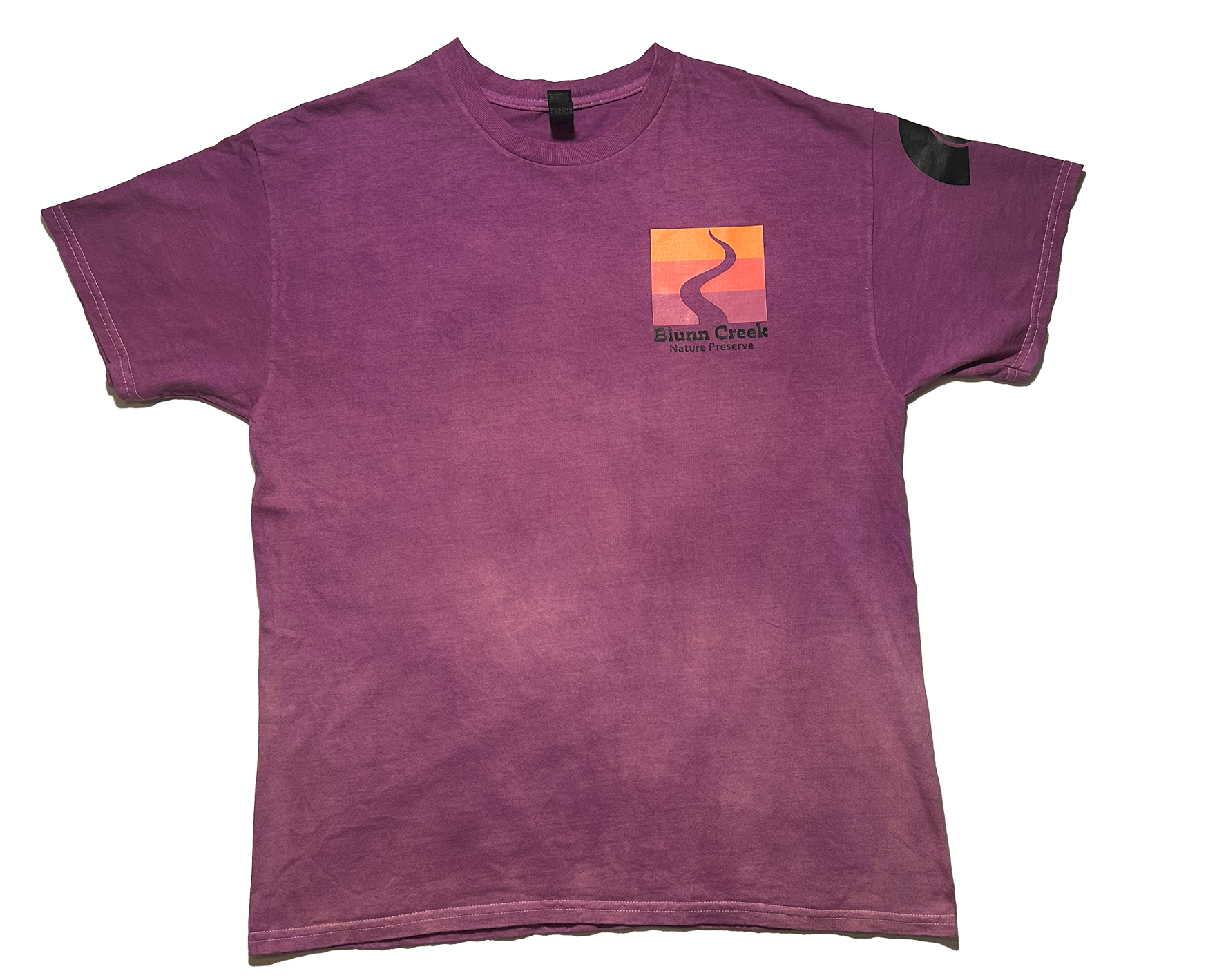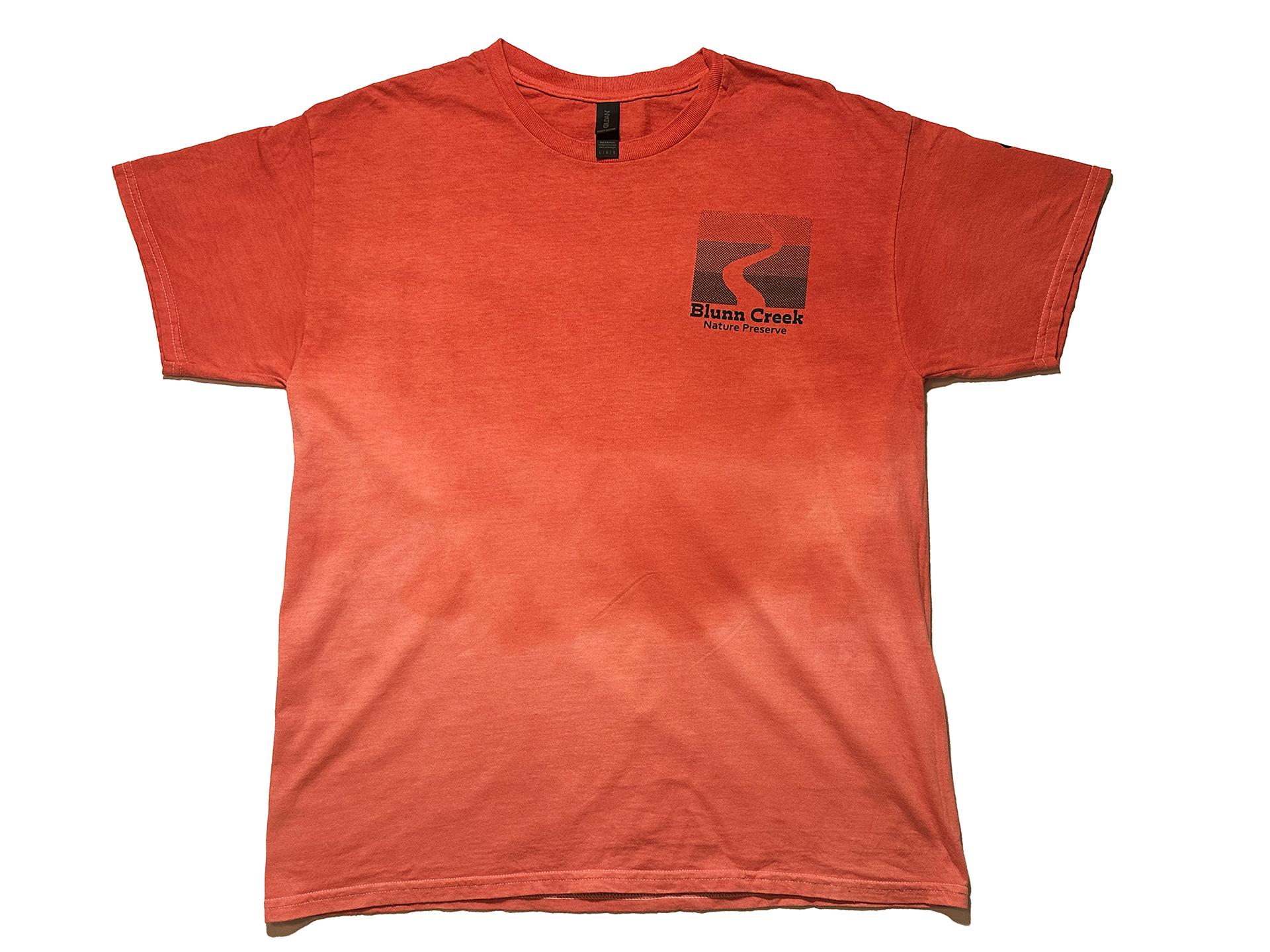 To go along with the hiking theme, I dip dyed three versions of t-shirts. Park goers could buy on the Blunn Creek Volunteer website, where all proceeds would go back into the volunteer project. Each shirt is one of the colors from the logo, with the logo on the front and one of the landmark symbols on the shoulders.